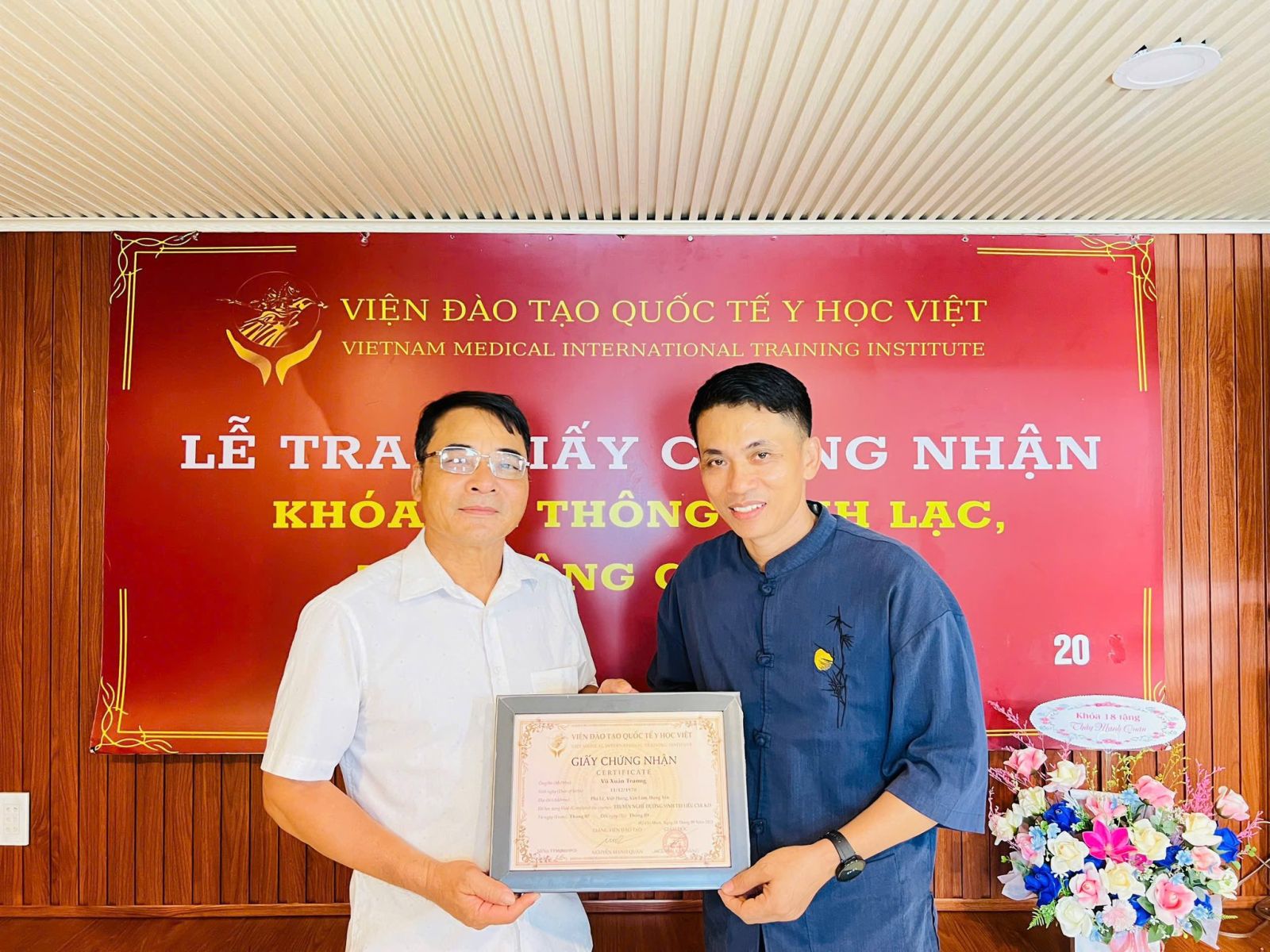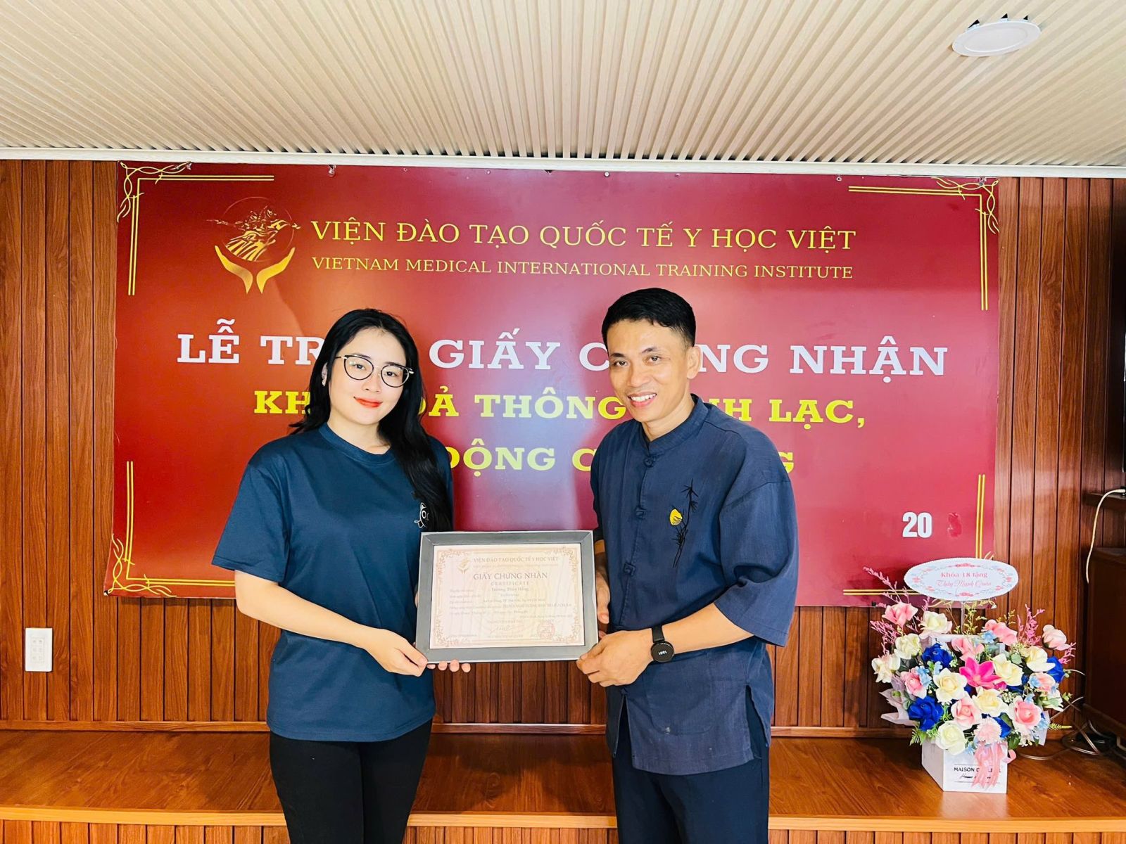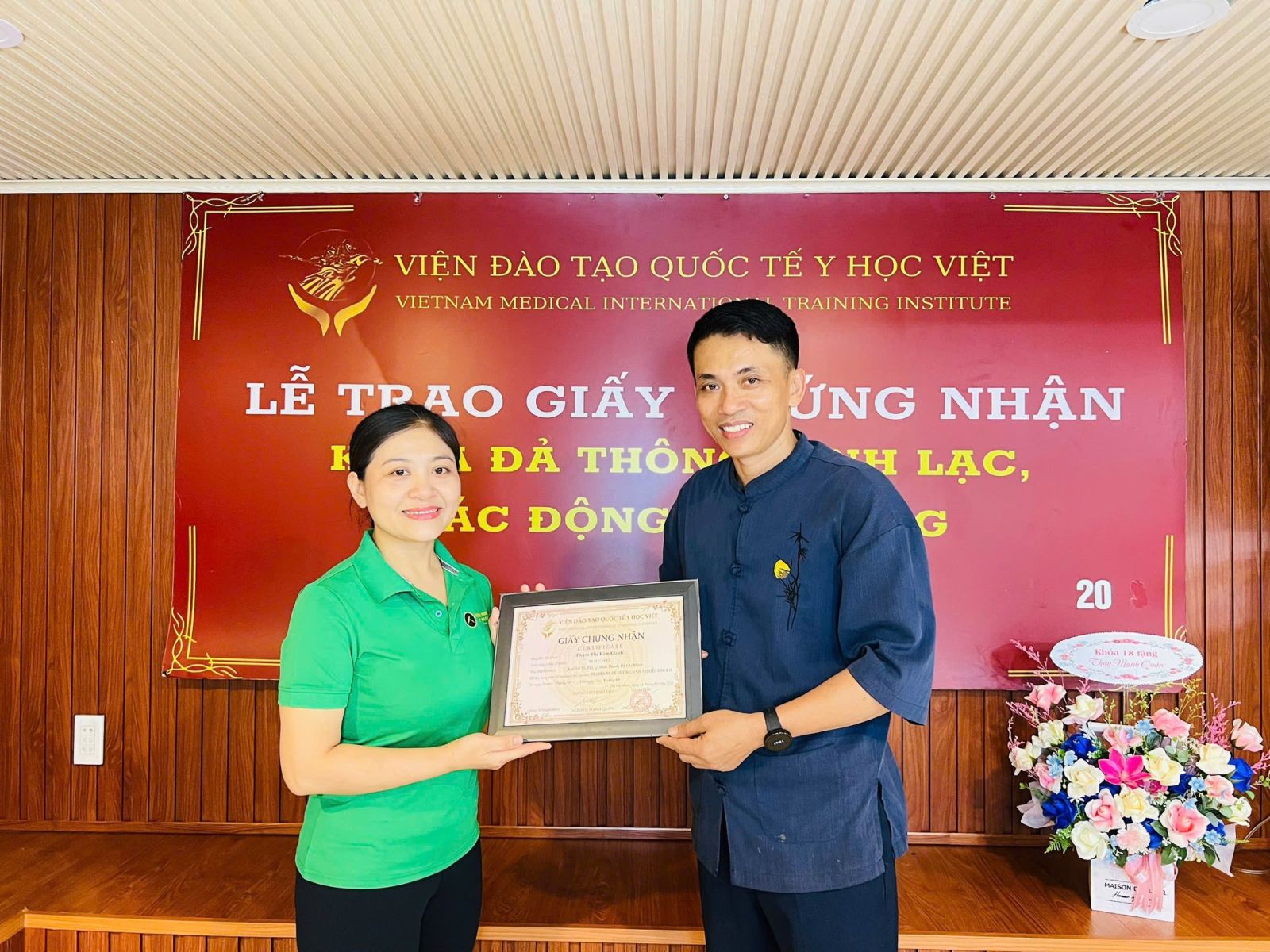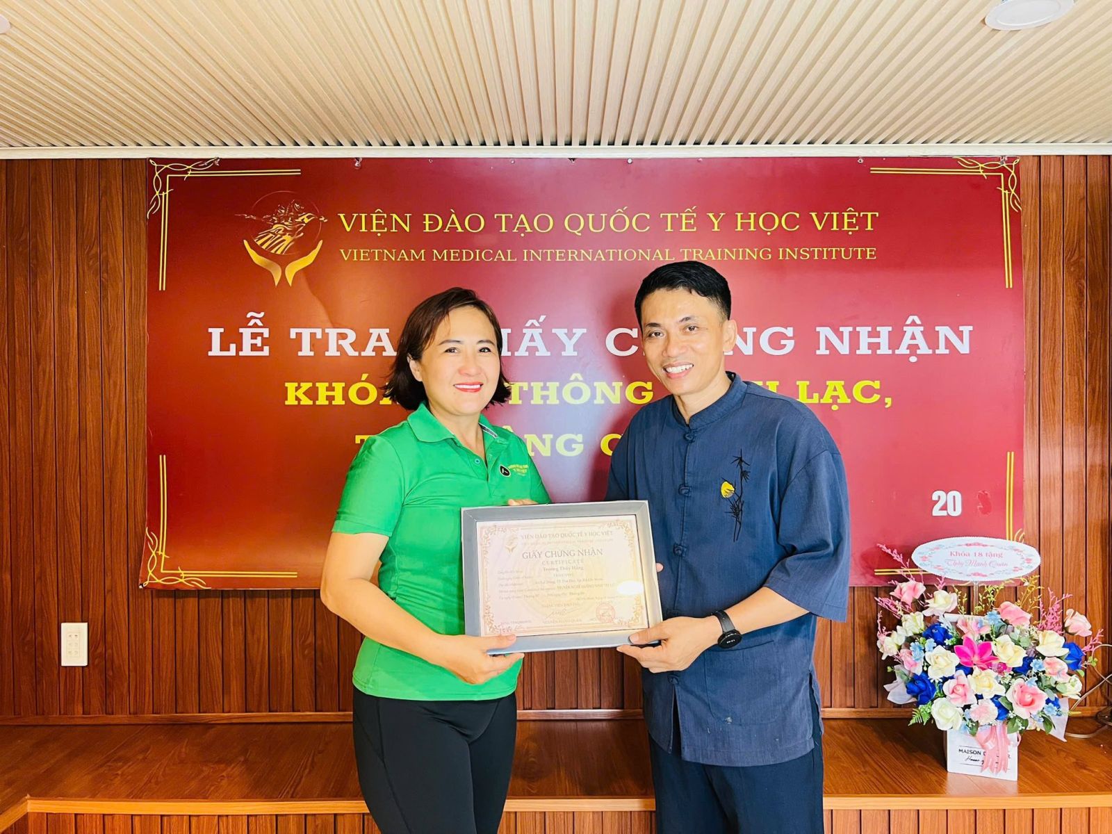 Buổi lễ là dịp để ghi nhận sự nỗ lực, tinh thần học hỏi và tình yêu nghề trị liệu của từng học viên. Tại đây, giảng viên Nguyễn Mạnh Quân đã trao giấy chứng nhận cho các học viên xuất sắc, gửi lời chúc mừng và động viên họ tiếp tục hành trình lan tỏa giá trị dưỡng sinh – trị liệu đến cộng đồng.